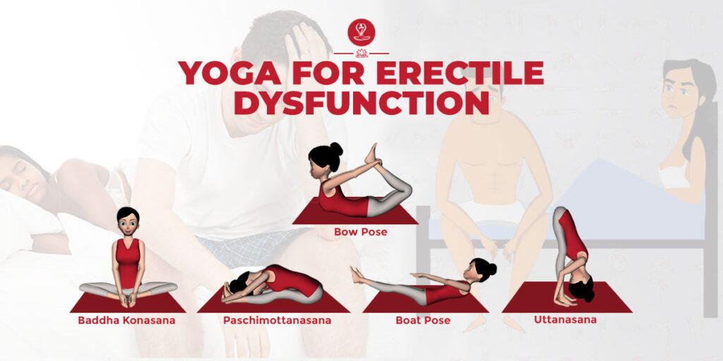 Erectile dysfunction (ED) is characterized by the consistent inability to achieve or maintain an erection sufficient for satisfactory sexual performance. While the causes of ED can vary, incorporating yoga into one’s routine can be advantageous for some individuals dealing with this condition. Yoga’s emphasis on relaxation, stress reduction, improved circulation, and strengthening of pelvic floor muscles can contribute to better sexual health and may help alleviate symptoms of ED.
